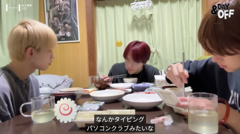 ハルアが&teamのメンバーEJとニコラスと一緒に帰省した際は、毎回ハルアのお母さんの手料理をみんなで食べているとVlog内で話しており、家庭的であたたかい雰囲気が感じられます。