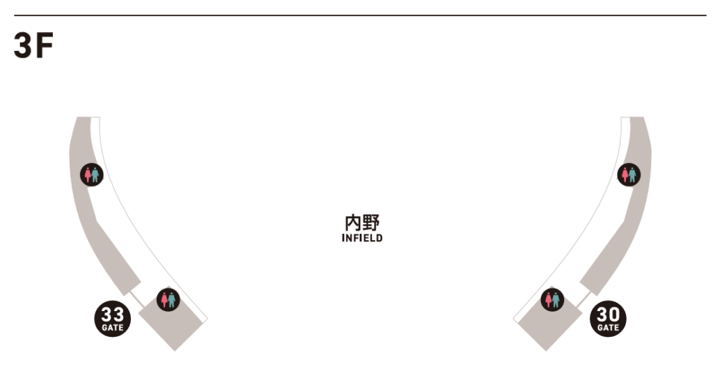 ※同じ30〜33ゲートでも、チケット次第で2階スタンドに回されることもあり、その場合は一般スタンド用トイレを使うことになります。