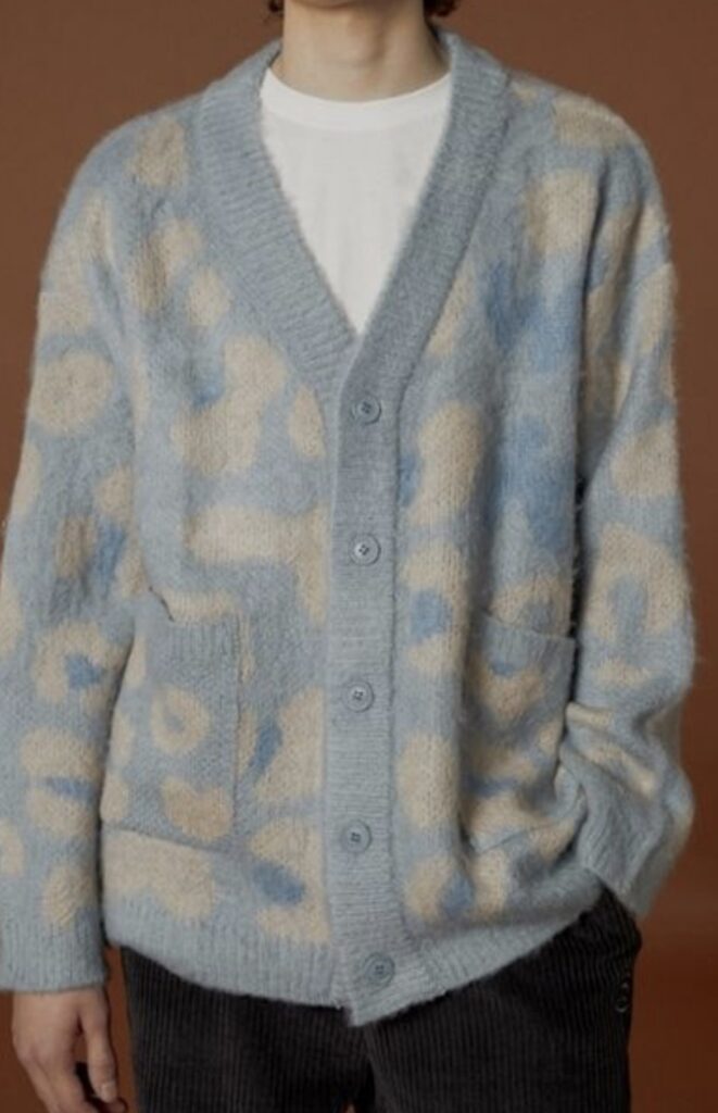 2021年2月10日のSnowManのYouTubeに出演した目黒さんは青いニットにダメージデニムを着用していました。膝が大きく開いたデザインが特徴的です。