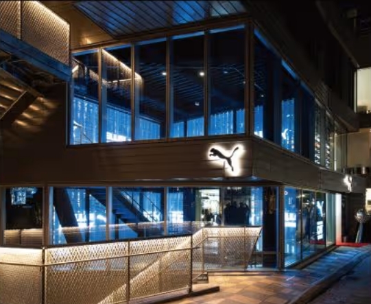 こちらの店舗はプーマの旗艦店となっており、吹き抜け階段に設置された幅12メートルの大型モニターが大きな特徴となっています。