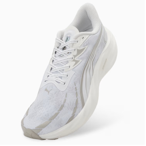 定番のプーマホワイトにグレイのラインを配しており、落ち着いて明るい色合いのモデルとなっています。