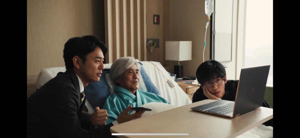中条耕一(目黒)が母のお見舞いに来て、一緒に病院内を散策したシーンも撮影されました。