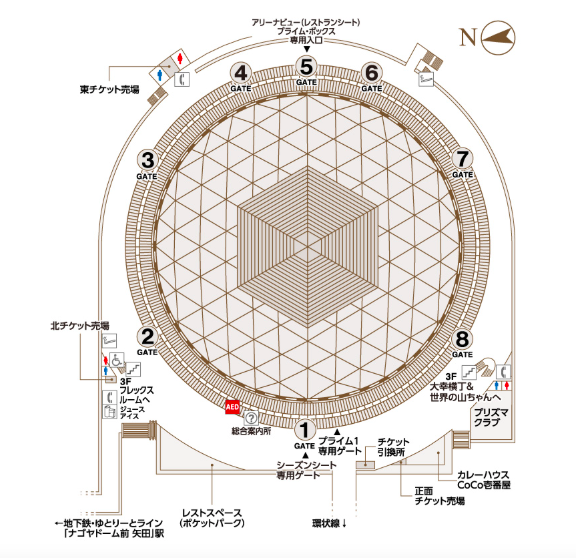 | 2ゲート | ナゴヤドーム前矢田駅から最短でアクセス可能。 |