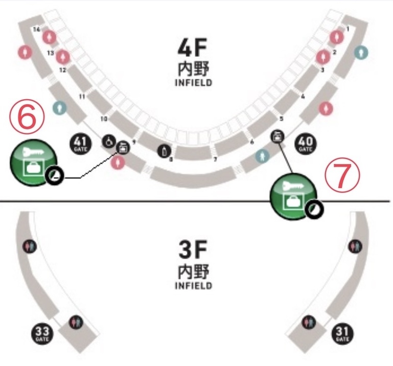 | ⑦4階コンコース 1塁側 40G横 4−5通路間前 | 小31個 |