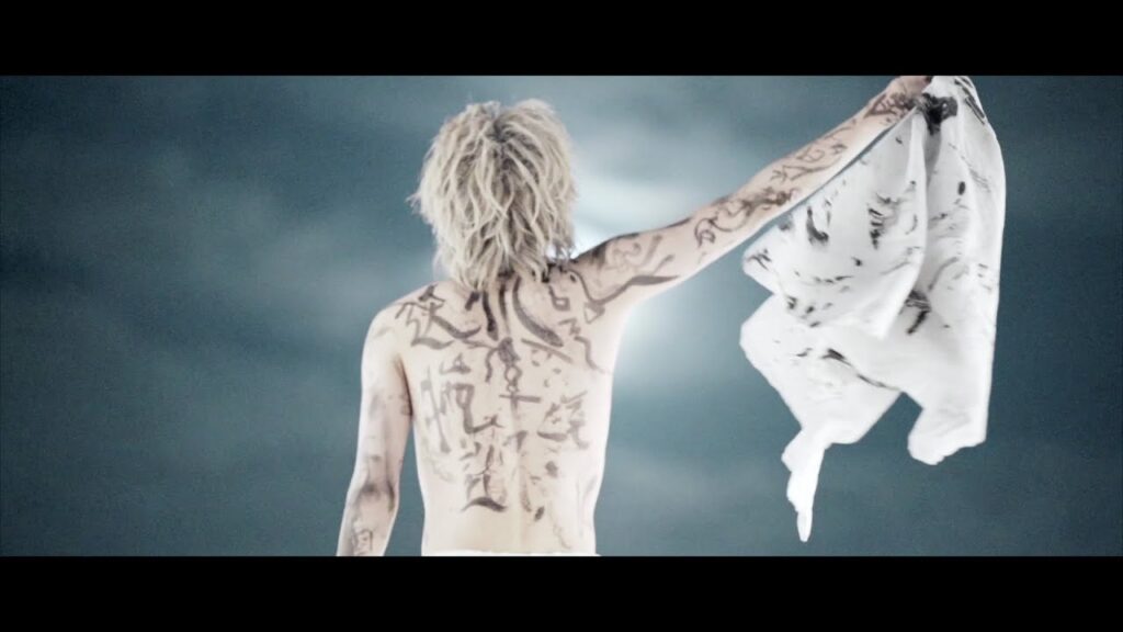 MVを通して見るとこれは全身タトゥーではなくMVの演出で、体だけではなく顔にもボディペイントが施されていました。